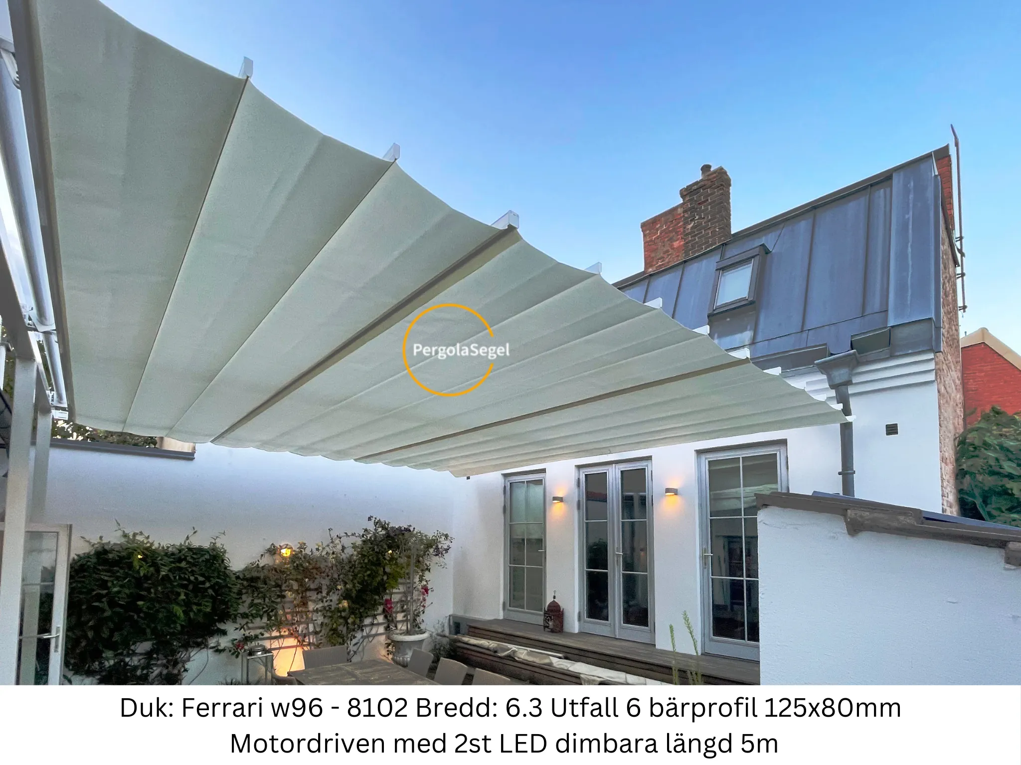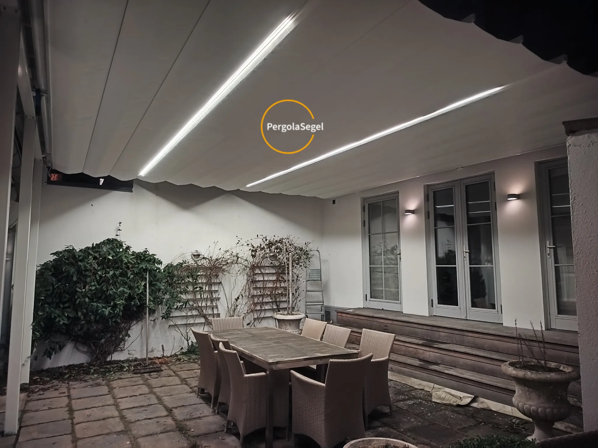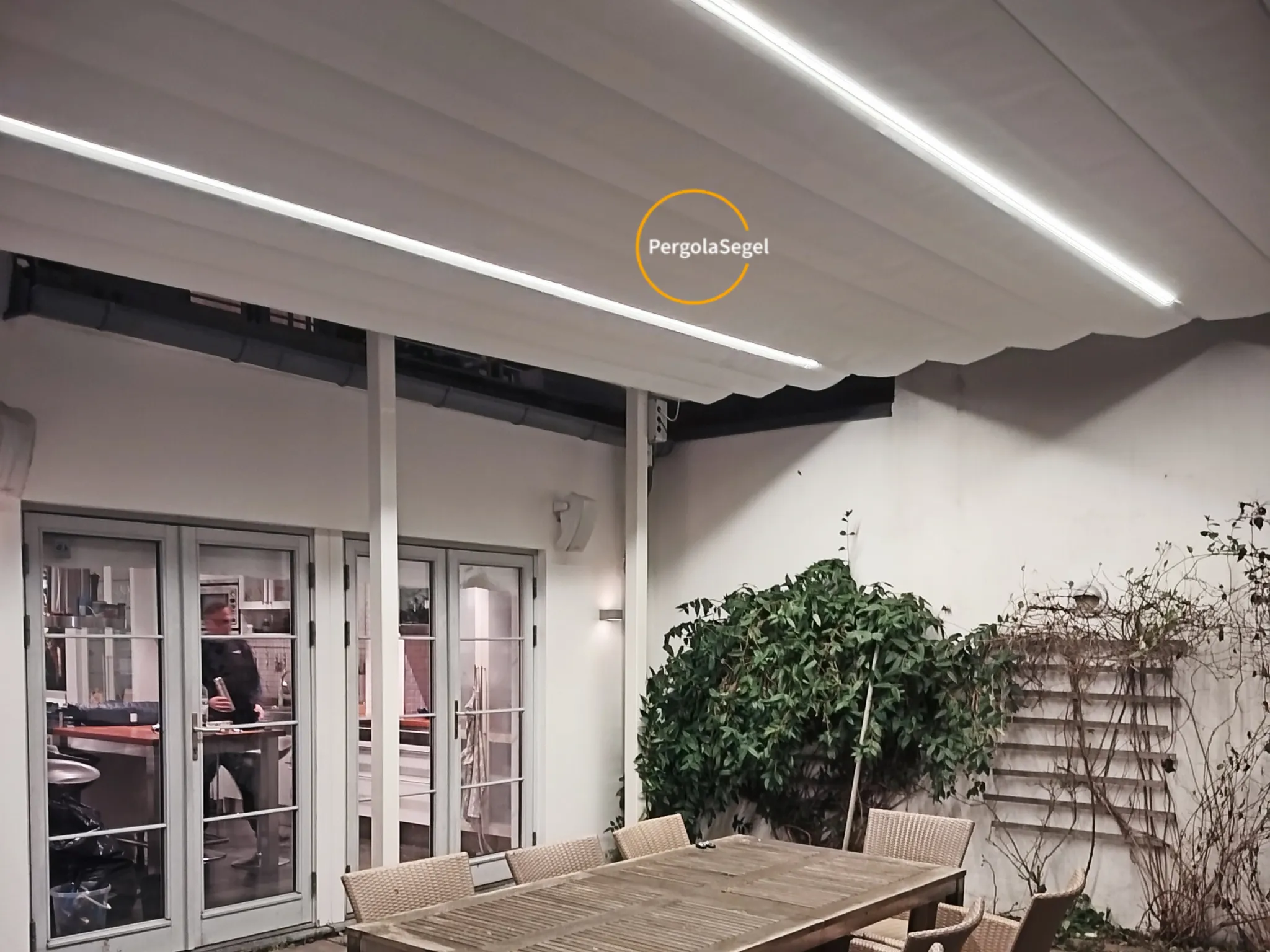 Vi bygger in dimbar Led-belysning var ni så önskar i vår pergolamarkis.