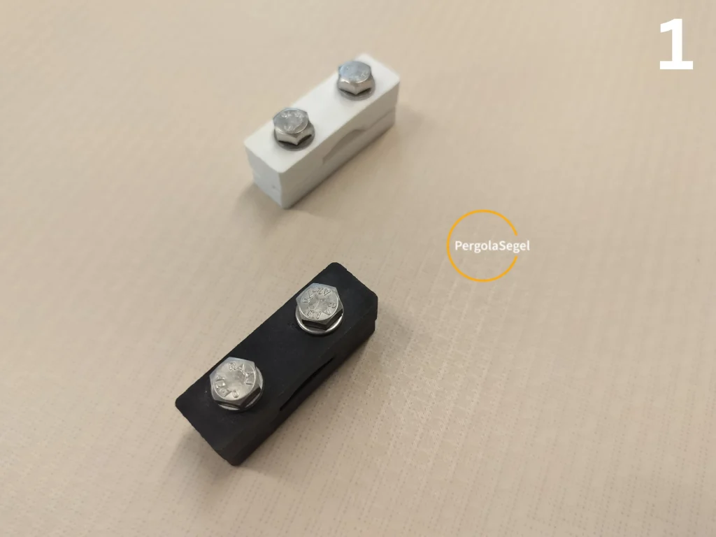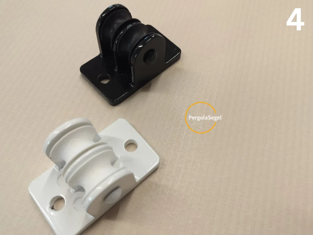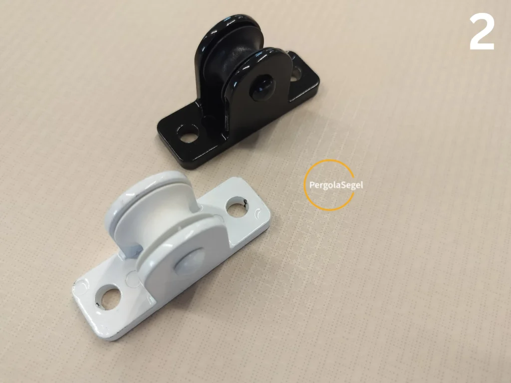 Nr1 fäste av linan . Linan går som en loop och är för lång så den kapar ni till rätt längd efter att ni monterat alla block och knapen. Vid knapen skall linan var minst 1m för lång.