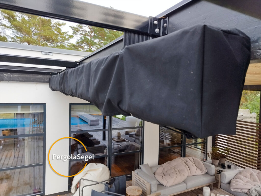 Efter sommarsäsong syr vi vinterfodral till våra pergolataks kunder. Med vårt måttapassade vinterfodral som vi syr i vattentät kapellduk så är takduken skyddad och håller sig snygg tills nästa sommarsäsong.